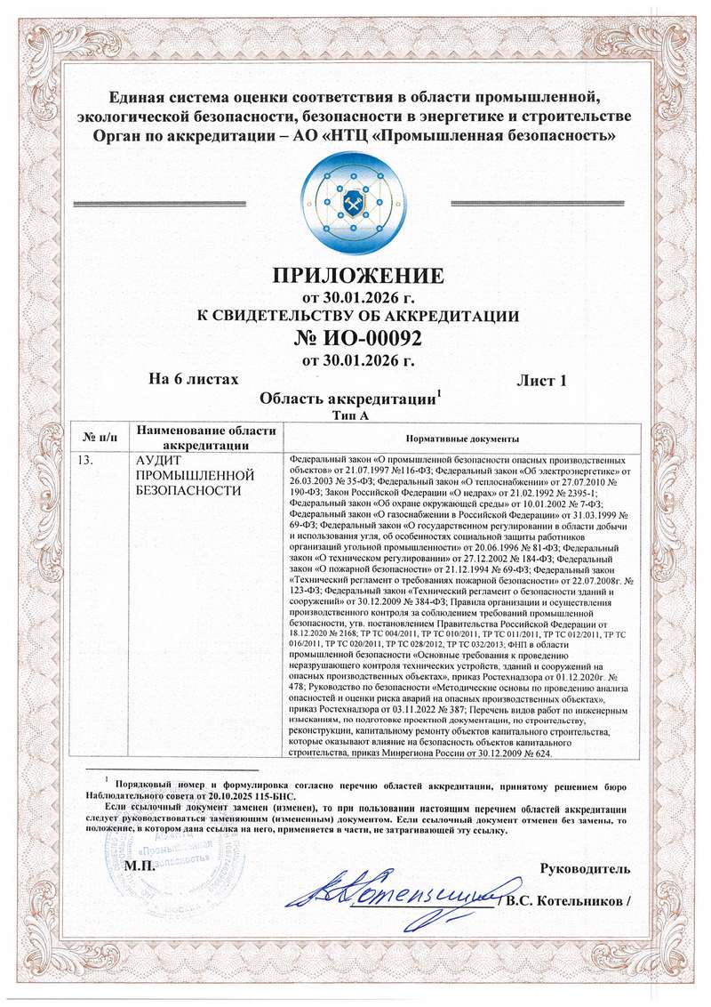 ООО «ССПЭБ» (Союз Специалистов Промышленной и Экологической безопасности) аккредитовано в качестве инспекционной организации типа А в соответствии с ГОСТ Р ИСО/МЭК 17020-2012 «Оценка соответствия. Требования к работе различных типов органов инспекции» И СДА-17-2009 «Требования к инспекционным организациям».